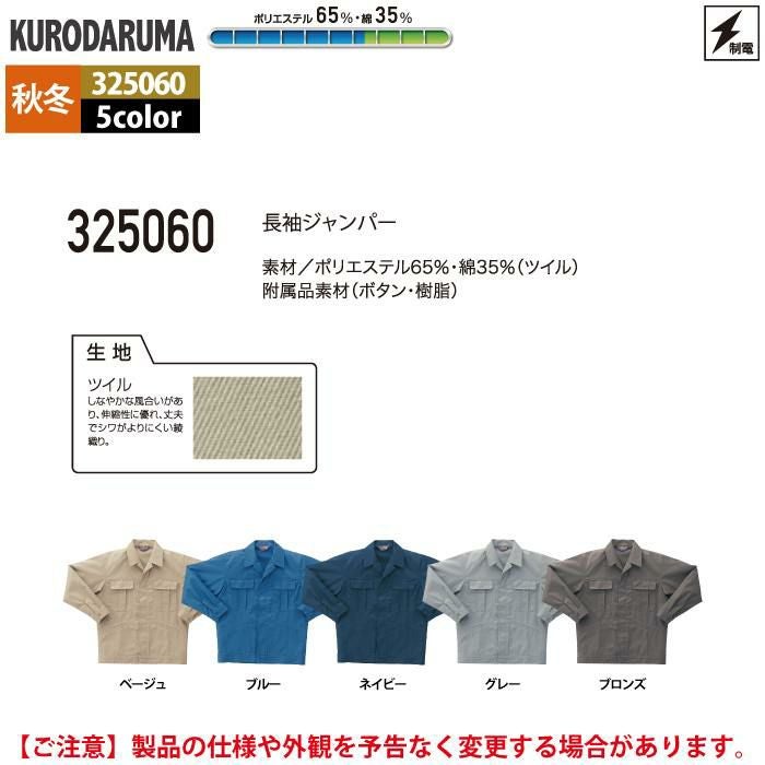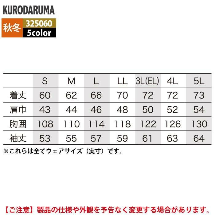 作業服 作業着 クロダルマ 作業服 秋冬用 325060 長袖ジャンパー 3L-5L
