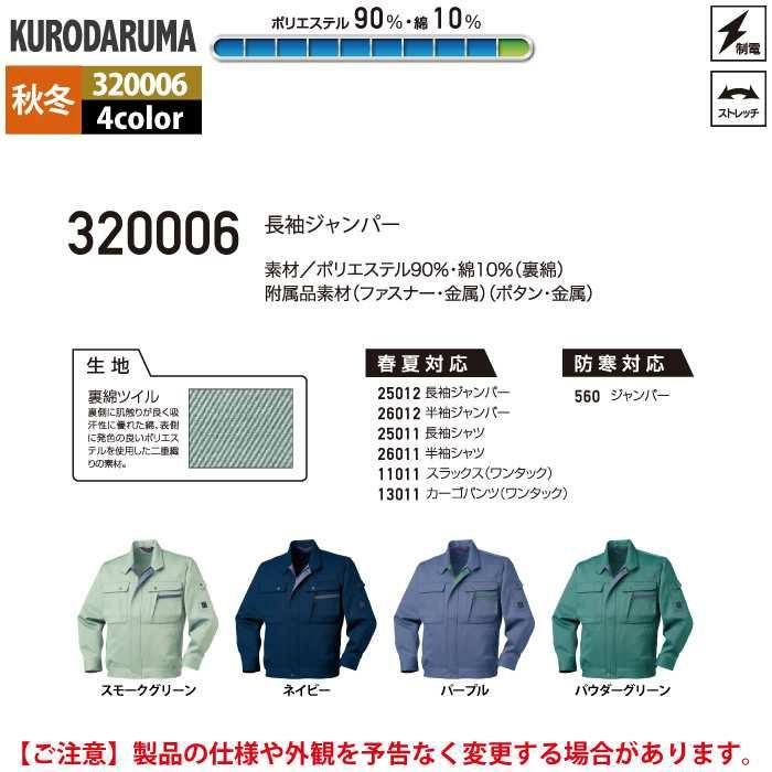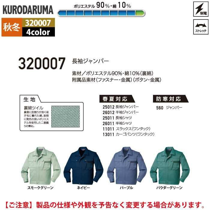 作業服 作業着 クロダルマ 作業服 秋冬用 320007 長袖ジャンパー S-LL