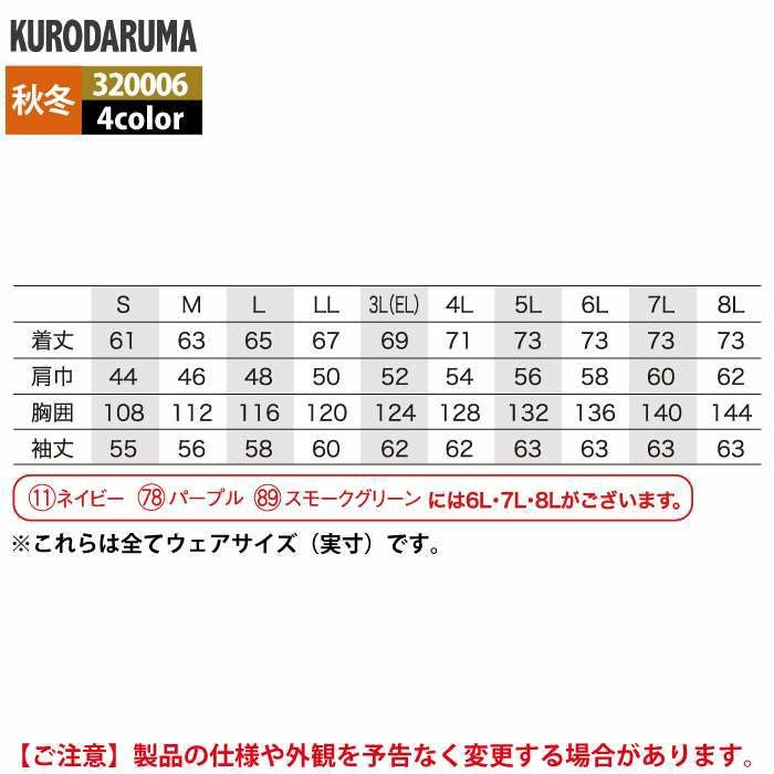 作業服 作業着 クロダルマ 作業服 秋冬用 320006 長袖ジャンパー 3L-5L