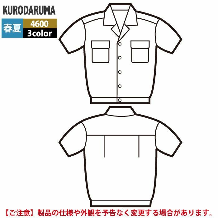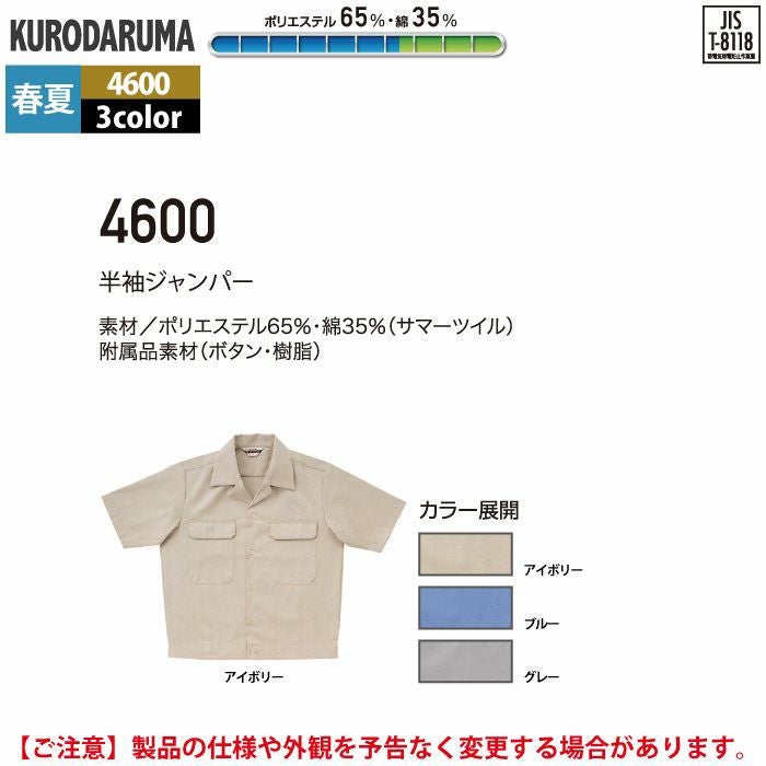 作業服 作業着 クロダルマ 作業服 春夏用 4600 半袖ジャンパー S-LL
