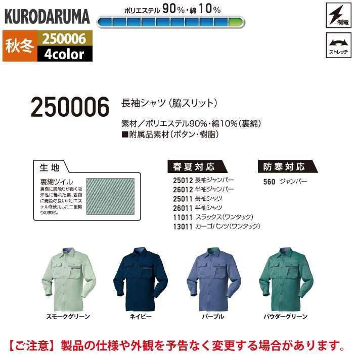 作業服 作業着 クロダルマ 作業服 秋冬用 250006 長袖シャツ(脇スリット) S-LL