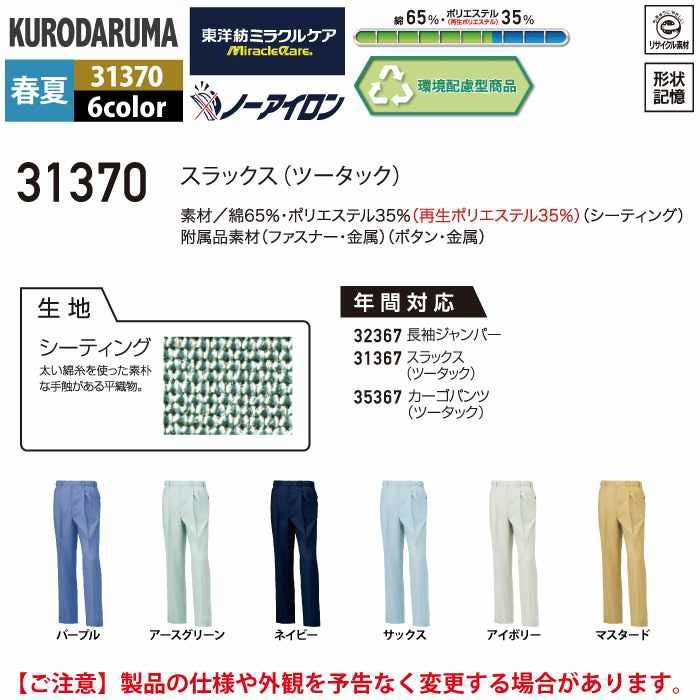 作業服 作業着 クロダルマ 作業服 春夏用 31370 スラックス 91-120
