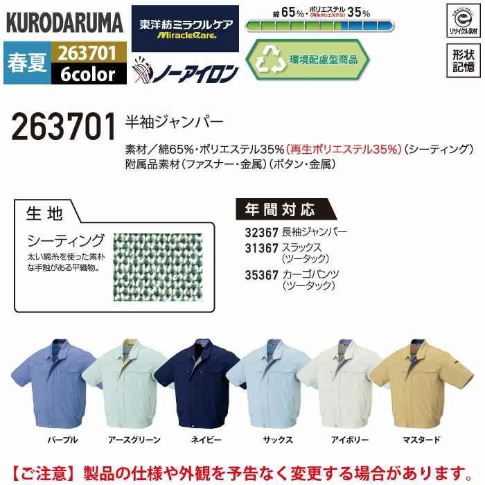 作業服 作業着 クロダルマ 作業服 春夏用 263701 半袖ジャンパー S-LL