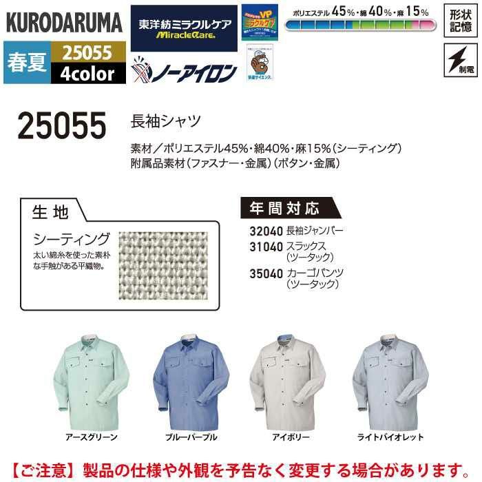 作業服 作業着 クロダルマ 作業服 春夏用 25055 長袖シャツ S-LL