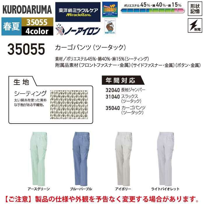 作業服 作業着 クロダルマ 作業服 春夏用 35055 カーゴパンツ 91-120