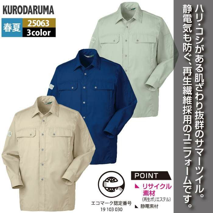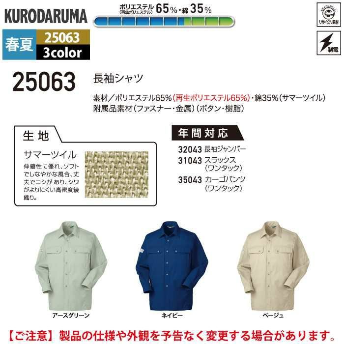 作業服 作業着 クロダルマ 作業服 春夏用 25063 長袖シャツ M-LL