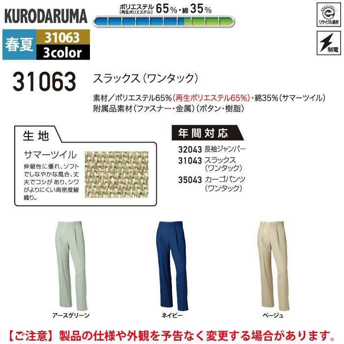 作業服 作業着 クロダルマ 作業服 春夏用 31063 スラックス 91-120