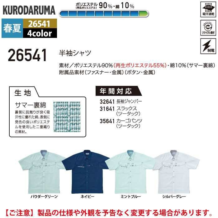 作業服 作業着 クロダルマ 作業服 春夏用 26541 半袖シャツ S-LL