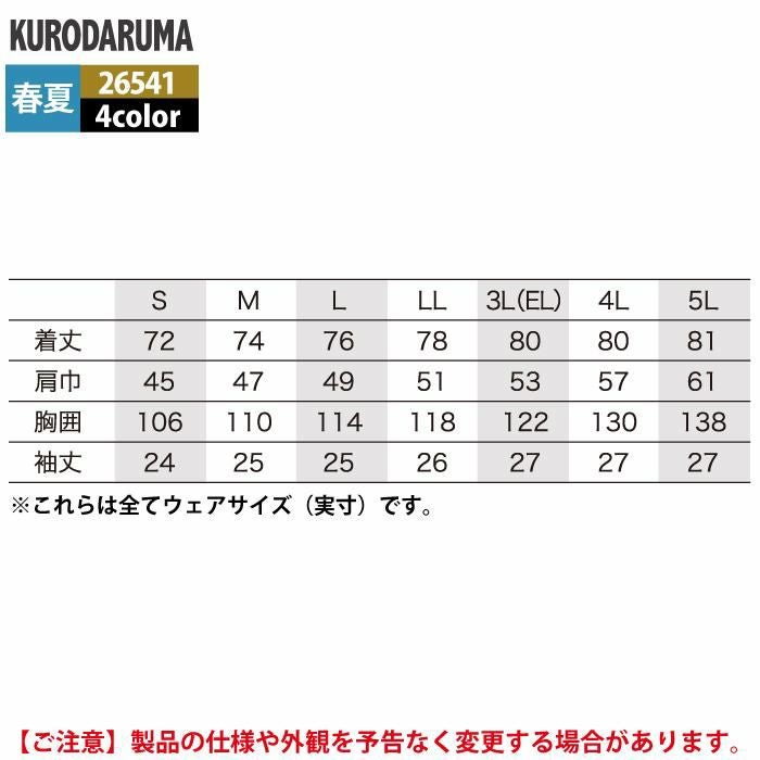 作業服 作業着 クロダルマ 作業服 春夏用 26541 半袖シャツ 3L-5L
