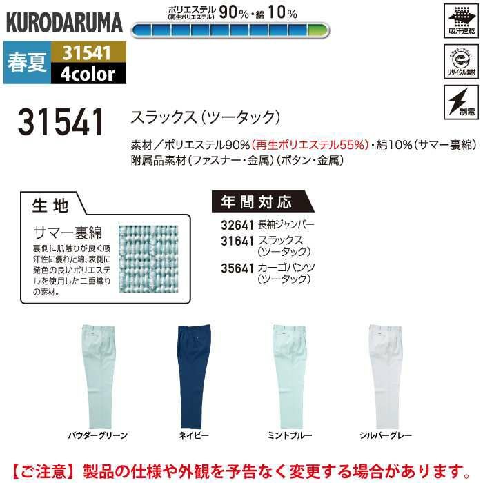 作業服 作業着 クロダルマ 作業服 春夏用 31541 スラックス 91-120