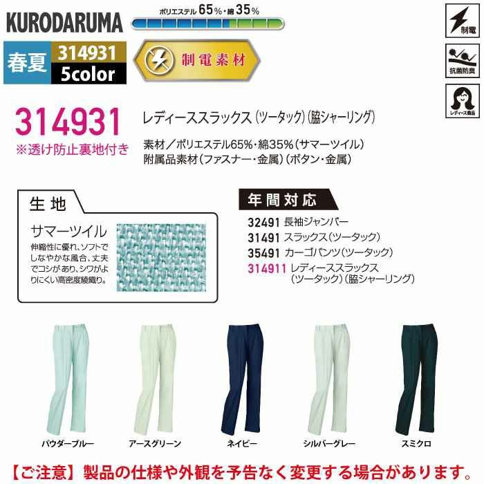 作業服 作業着 クロダルマ 作業服 春夏用 314931 レディーススラックス S-LL