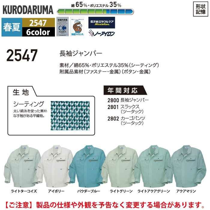 作業服 作業着 クロダルマ 作業服 春夏用 2547 長袖ジャンパー S-LL