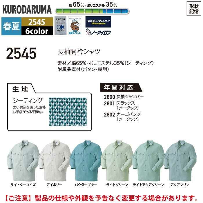 作業服 作業着 クロダルマ 作業服 春夏用 2545 長袖開衿シャツ S-LL