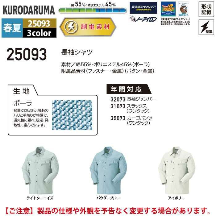 作業服 作業着 クロダルマ 作業服 春夏用 25093 長袖シャツ S-LL