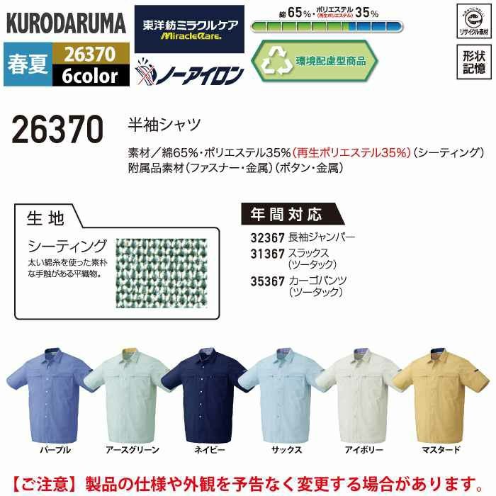作業服 作業着 クロダルマ 作業服 春夏用 26370 半袖シャツ S-LL