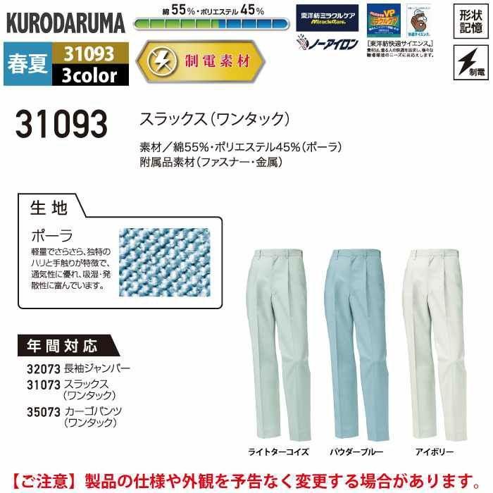 作業服 作業着 クロダルマ 作業服 春夏用 31093 スラックス 91-120