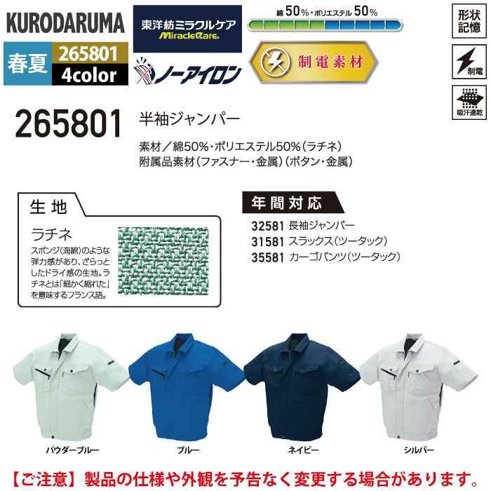 作業服 作業着 クロダルマ 作業服 春夏用 265801 半袖ジャンパー S-LL