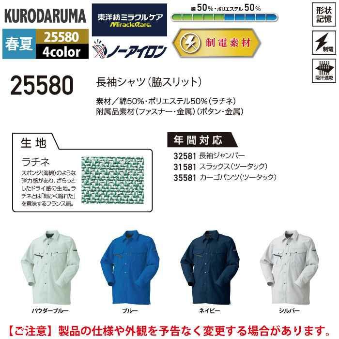 作業服 作業着 クロダルマ 作業服 春夏用 25580 長袖シャツ S-LL