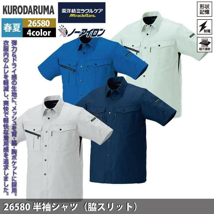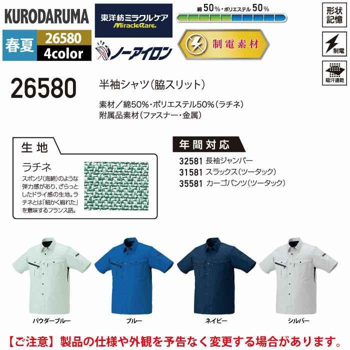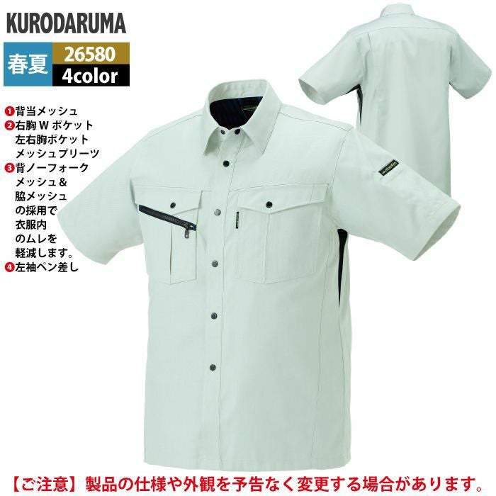 作業服 作業着 クロダルマ 作業服 春夏用 26580 半袖シャツ S-LL