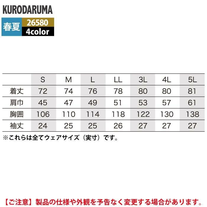 作業服 作業着 クロダルマ 作業服 春夏用 26580 半袖シャツ 3L-5L