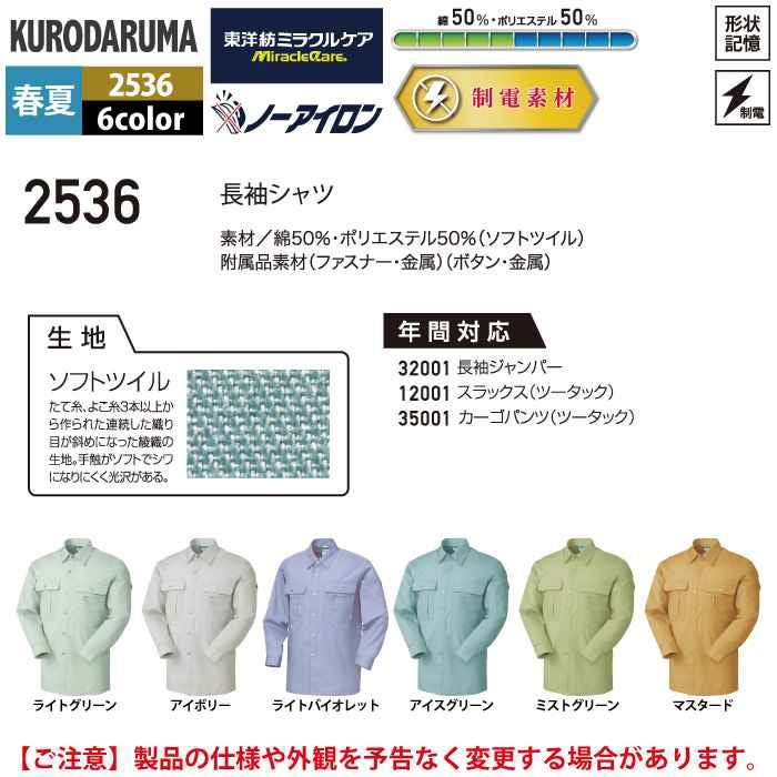 作業服 作業着 クロダルマ 作業服 春夏用 2536 長袖シャツ S-LL