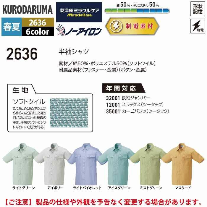 作業服 作業着 クロダルマ 作業服 春夏用 2636 半袖シャツ S-LL