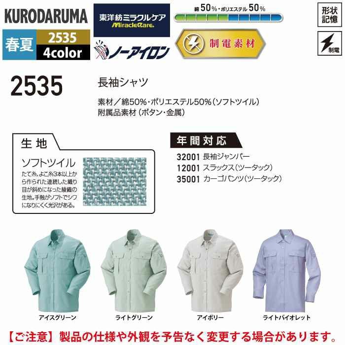 作業服 作業着 クロダルマ 作業服 春夏用 2535 長袖シャツ S-LL