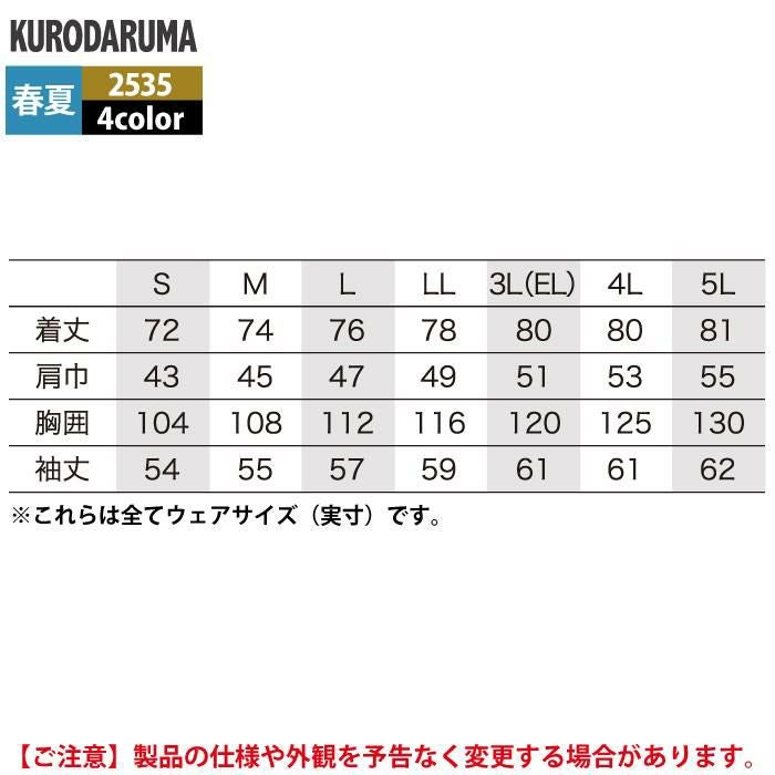 作業服 作業着 クロダルマ 作業服 春夏用 2535 長袖シャツ 3L-5L