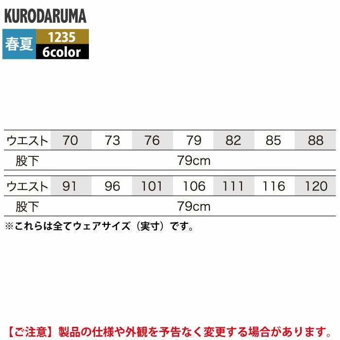 作業服 作業着 クロダルマ 作業服 春夏用 1235 スラックス 70-88