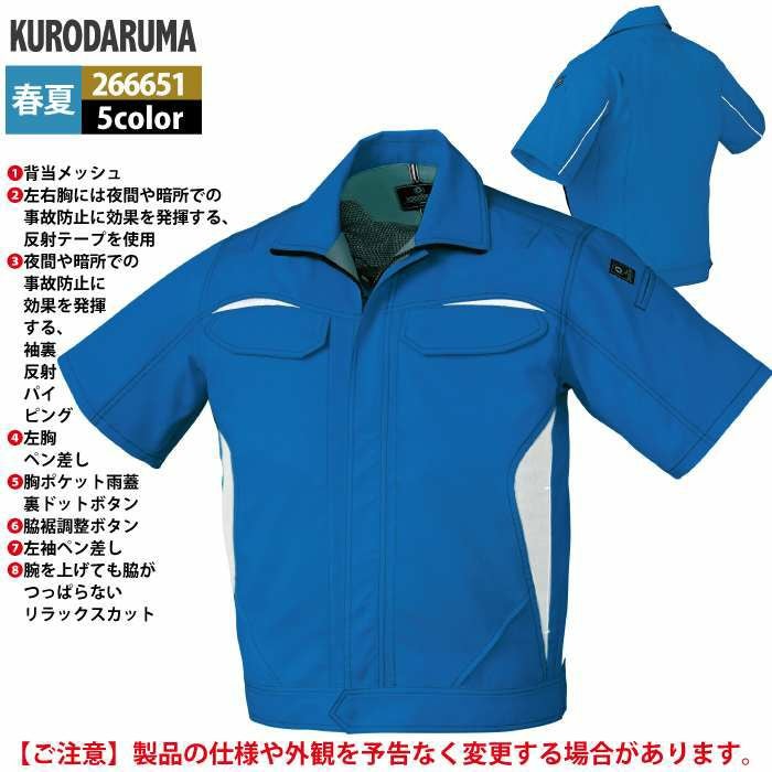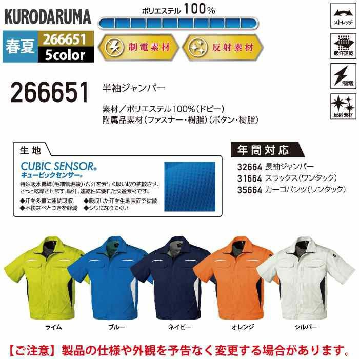 作業服 作業着 クロダルマ 作業服 春夏用 266651 半袖ジャンパー S-LL