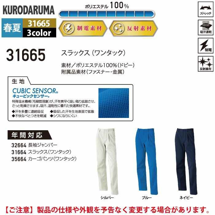 作業服 作業着 クロダルマ 作業服 春夏用 31665 スラックス 70-88