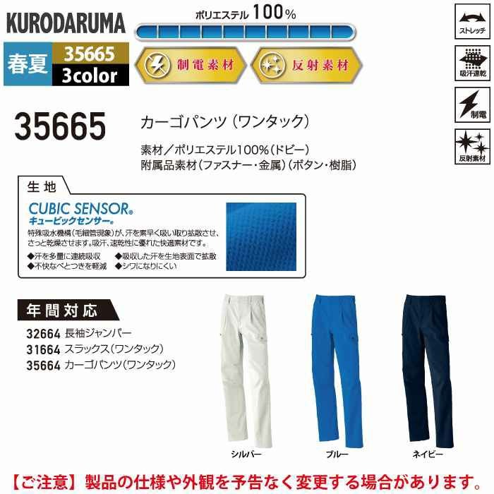 作業服 作業着 クロダルマ 作業服 春夏用 35665 カーゴパンツ 91-120