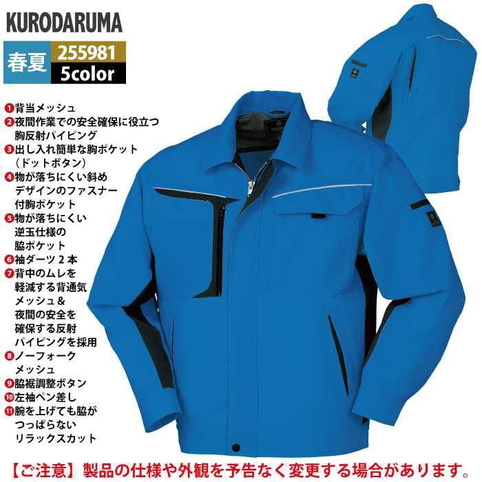 作業服 作業着 クロダルマ 作業服 春夏用 255981 長袖ジャンパー SS-LL
