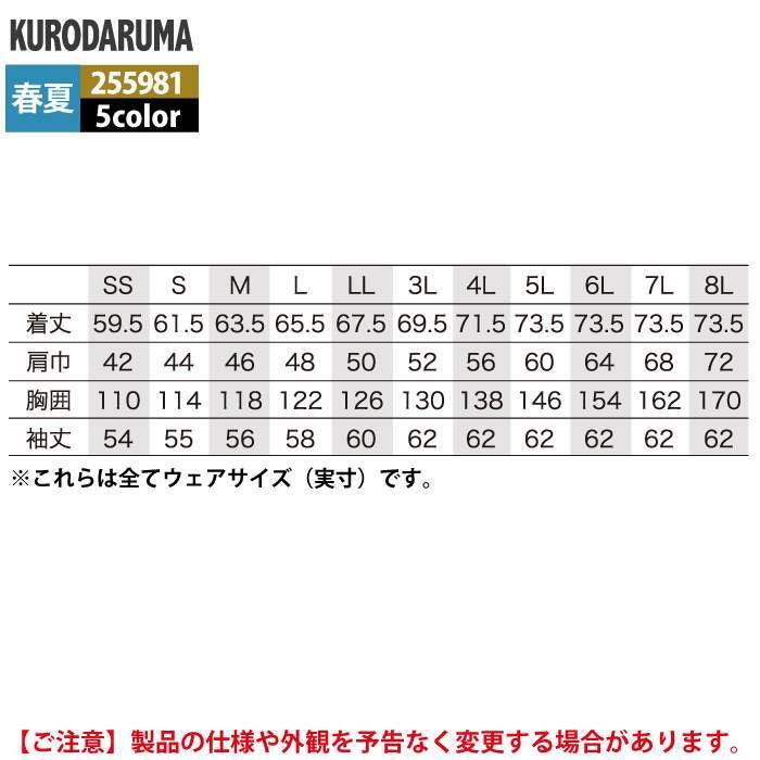 作業服 作業着 クロダルマ 作業服 春夏用 255981 長袖ジャンパー 3L-5L