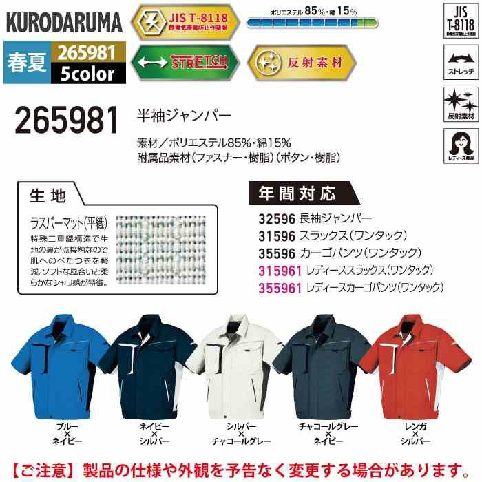 作業服 作業着 クロダルマ 作業服 春夏用 265981 半袖ジャンパー SS-LL