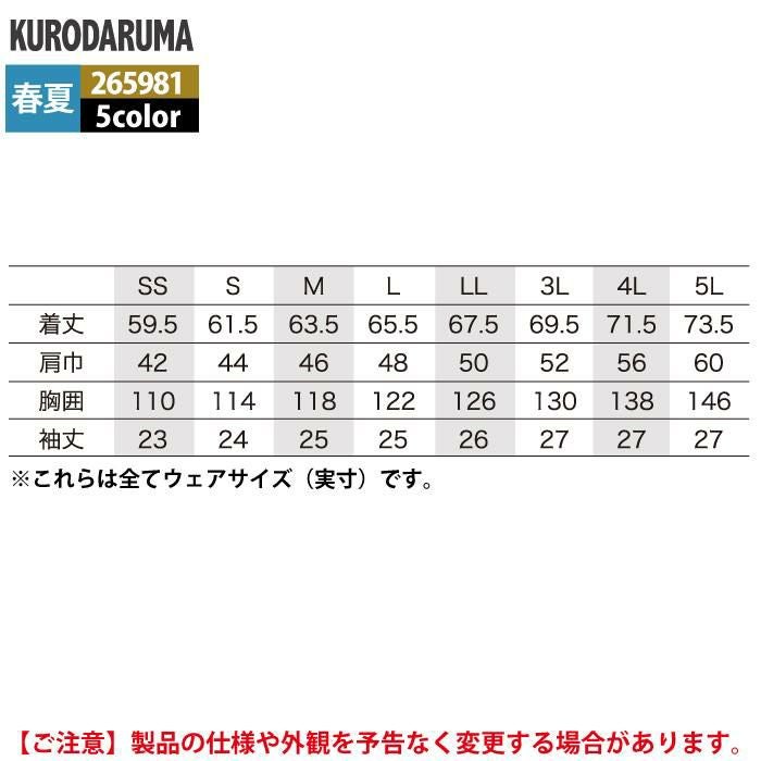 作業服 作業着 クロダルマ 作業服 春夏用 265981 半袖ジャンパー 3L-5L