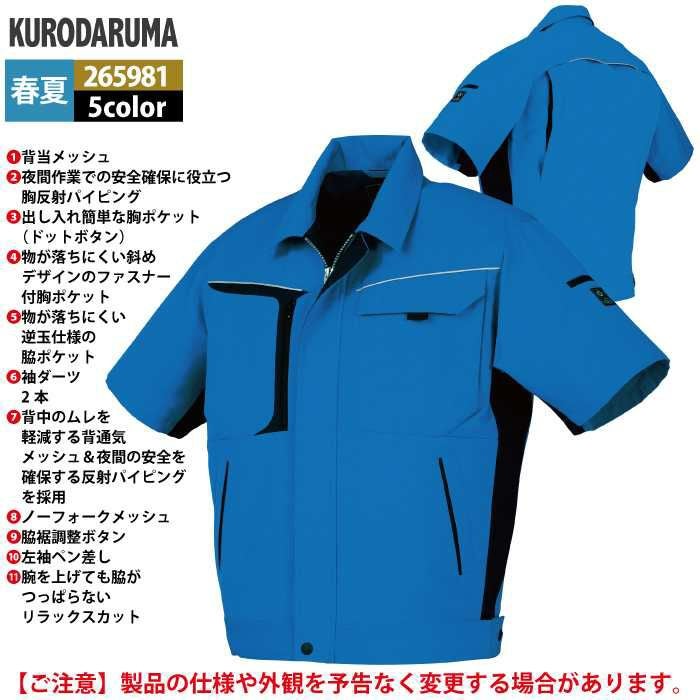 作業服 作業着 クロダルマ 作業服 春夏用 266181 半袖ジャンパー SS-LL