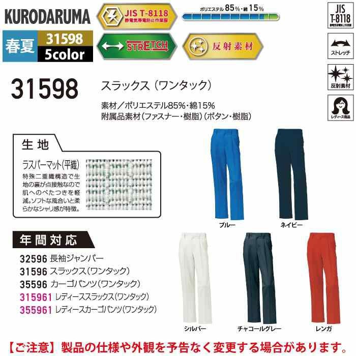 作業服 作業着 クロダルマ 作業服 春夏用 31598 スラックス 91-120