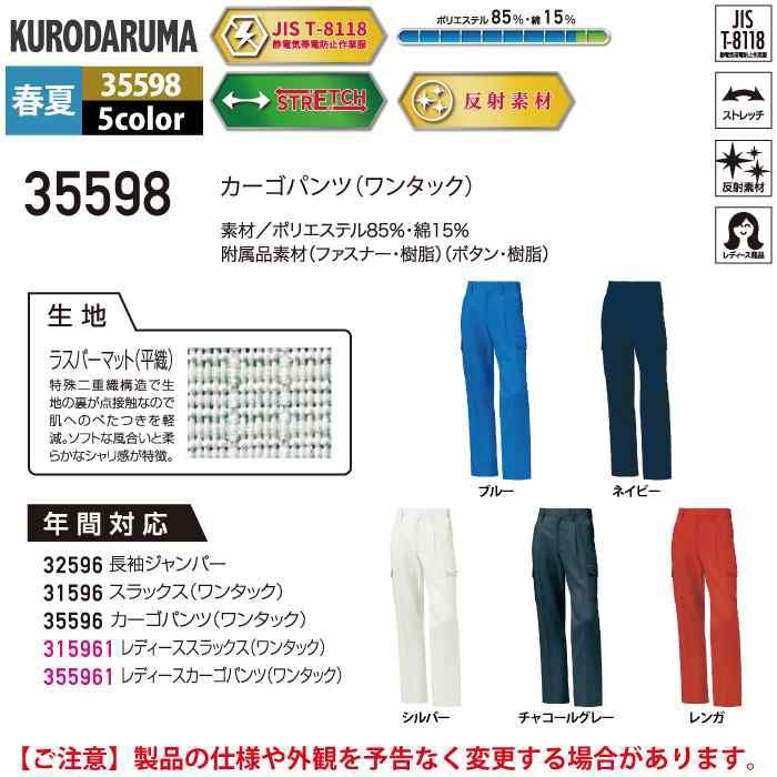 作業服 作業着 クロダルマ 作業服 春夏用 35598 カーゴパンツ 91-120