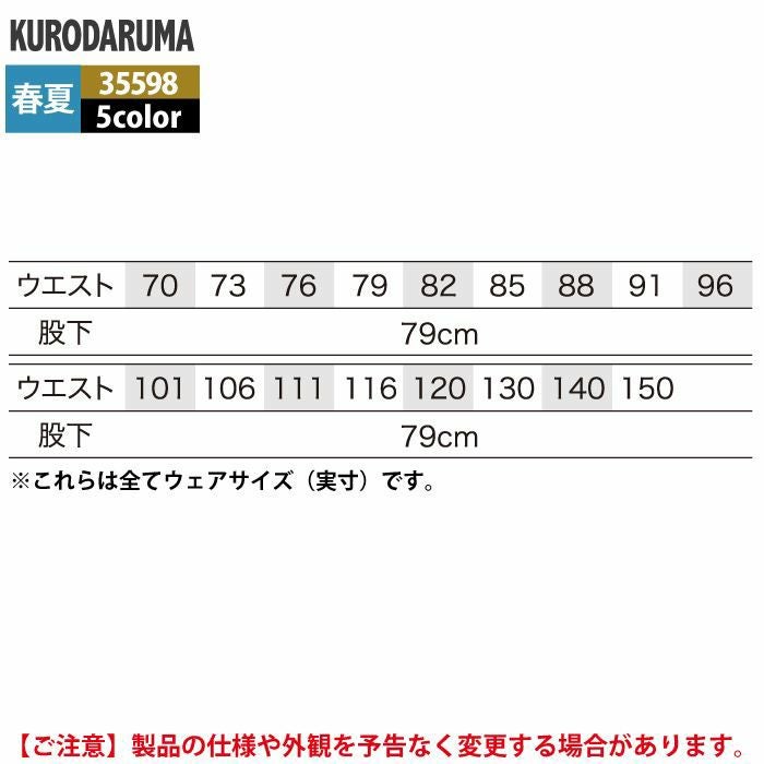 作業服 作業着 クロダルマ 作業服 春夏用 31598 スラックス 70-88