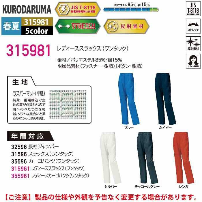 作業服 作業着 クロダルマ 作業服 春夏用 315981 レディーススラックス 61-80