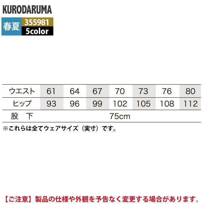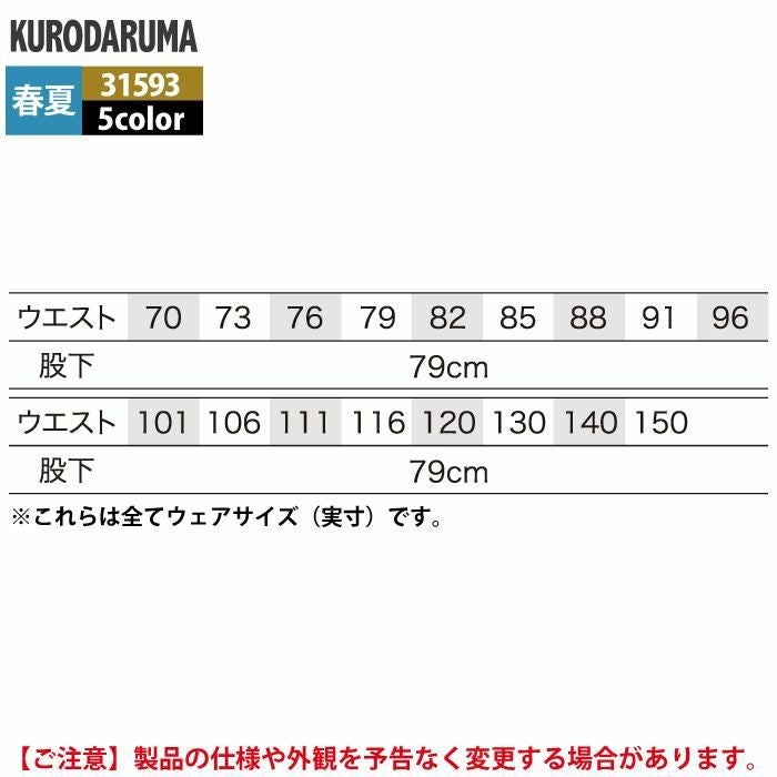 作業服 作業着 クロダルマ 作業服 春夏用 31593 スラックス 70-88