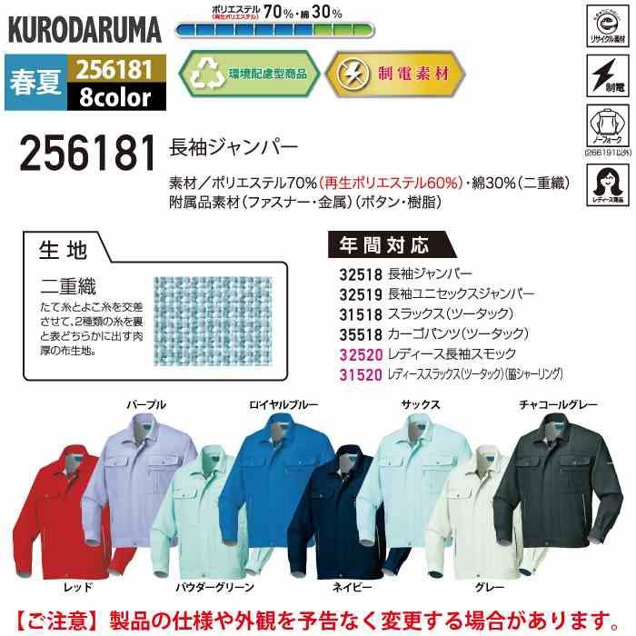 作業服 作業着 クロダルマ 作業服 春夏用 256181 長袖ジャンパー SS-LL