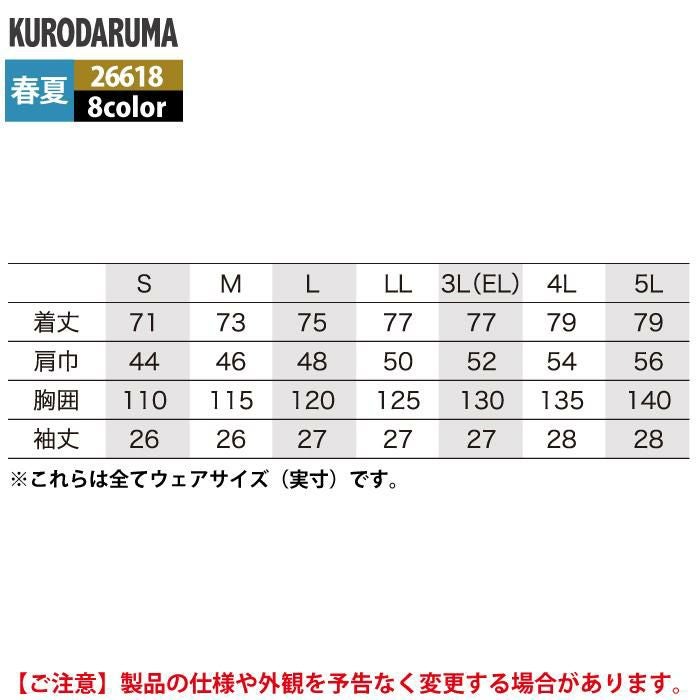 作業服 作業着 クロダルマ 作業服 春夏用 26618 半袖シャツ S-5L