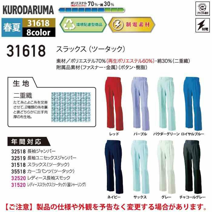 作業服 作業着 クロダルマ 作業服 春夏用 31618 スラックス 91-120