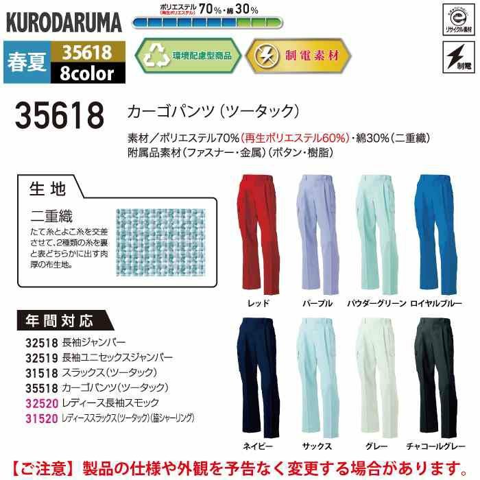 作業服 作業着 クロダルマ 作業服 春夏用 35618 カーゴパンツ 91-120