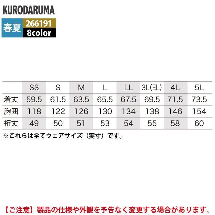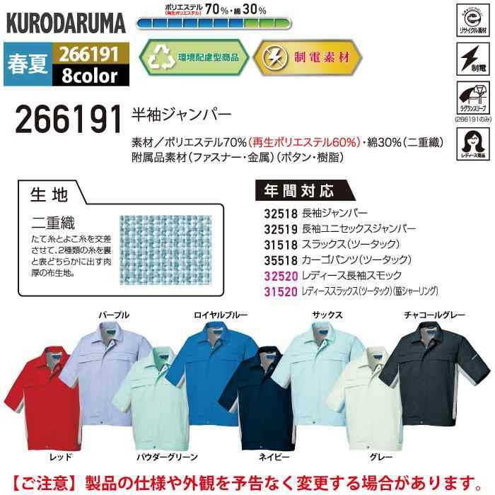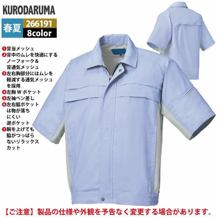 作業服 作業着 クロダルマ 作業服 春夏用 266191 半袖ジャンパー SS-LL