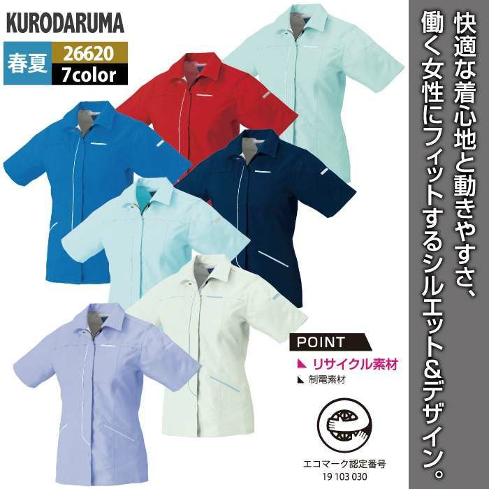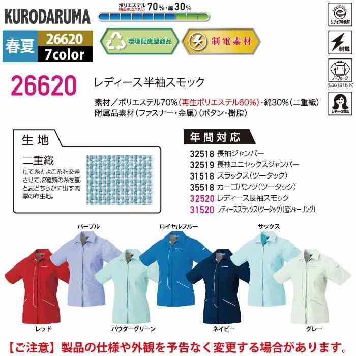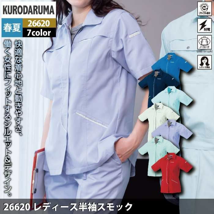 作業服 作業着 クロダルマ 作業服 春夏用 26620 レディース半袖スモック S-LL