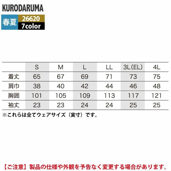 作業服 作業着 クロダルマ 作業服 春夏用 26593 半袖シャツ 6L