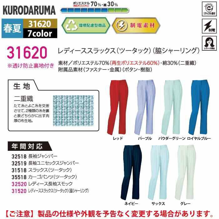 作業服 作業着 クロダルマ 作業服 春夏用 31620 レディーススラックス S-LL